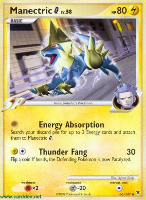 Kosten: Durchsuche deinen Ablagestapel nach bis zu 2 Energiekarten und lege sie an Voltenso G an.  Schaden: