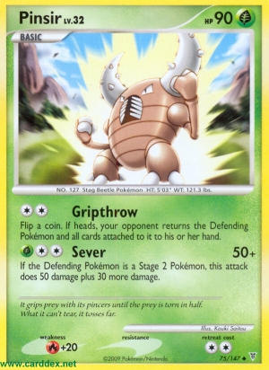 Kosten: Wenn das Verteidigende Pokémon ein Phase 2 Pokémon ist, fügt dieser Angriff 50 Schadenspunkte plus 30 weitere Schadenspunkte zu.  Schaden:
