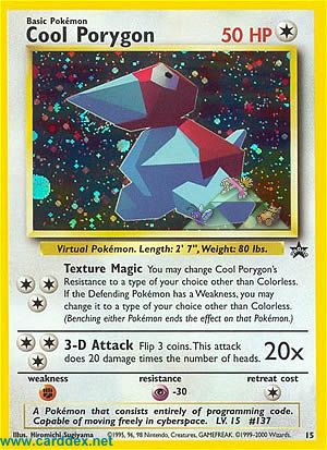 You may change Cool Porygon's Resistence to a type of your choice other than Colorless. If the Defending Pokemon has a Weakness, you may chance it to a type of your choice other than Colerless. (Becnhing either Pokemon ends the effect on that Pokemon.)