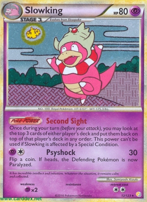 Einmal während deines Zuges (vor deinem Angriff) kannst du dir die obersten 3 Karten eines Decks anschauen und sie danach in beliebiger Reihenfolge wieder auf das Deck des Spielers zurücklegen. Diese Poké-Power kann nicht benutzt werden, wenn Laschoking von einem Speziellen Zustand betroffen ist.