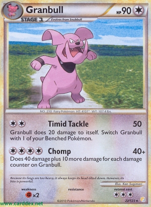 Kosten: Granbull fügt sich selbst 20 Schadenspunkte zu. Tausche Granbull gegen 1 Pokémon auf deiner Bank aus.   Schaden: