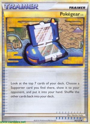 Beschreibung: Schau dir die obersten 7 Karten deines Decks an. Falls Unterstützungskarten darunter sind, wähle eine davon, zeige sie deinem Gegner und nimm sie auf die Hand. Mische die anderen Karten anschließend in dein Deck.