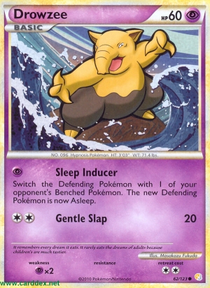 Kosten: Tausche das Verteidigende Pokémon gegen 1 Pokémon auf der Bank deines Gegners aus. Das neue Verteidigende Pokémon schläft jetzt.   Schaden:
