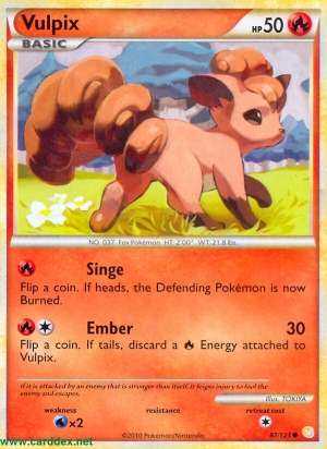 Kosten: Wirf eine Münze. Bei „Zahl“ lege 1 an Vulpix angelegte -Energie auf deinen Ablagestapel.   Schaden: