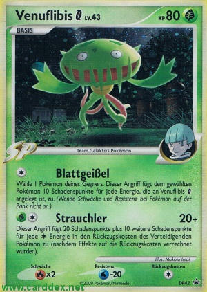 Wähle 1 Pokémon deines Gegners. Dieser Angriff fügt dem gewählten Pokémon 10 Schadenspunkte für jede an Venuflibis G angelegte Energie zu. (Wende Schwäche und Resistenz bei Pokémon auf der Bank nicht an.)