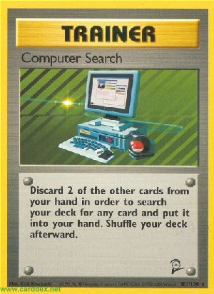 Entferne 2 Karten aus deiner Hand, um im Stapel nach einer beliebigen Karte zu suchen. Nimm die gewählte Karte auf Deiner Hand und mische danach den Stapel.