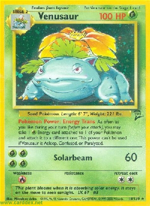 Bist du am Zug, kannst Du (vor deinem Angriff) beliebig oft eine auf einem Deiner Pokemon abgelegte Energiekarte nehmen und auf ein anderes legen. Diese Fähigkeit kann nicht eingesetzt werden, falls Bisaflor schlafend, verwirrt oder gelähmt ist.
