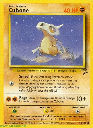 Kosten: Greift das verteidigende Pokemon Tragossi während des nächsten gegnerischen Zuges an, wird aller aufgrund dieses Angriffs zugefügte Schaden um 20 Schadenspunkte reduziert (nachdem Schwäche und Resistenz abgerechnet wurden). (Kommt einer der beiden Pokemon auf die Bank, ist diese Wirkung nich weiter gültig.)  Schaden:
