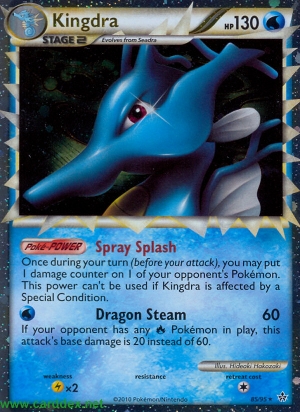 Einmal während deines Zuges (vor deinem Angriff) kannst du 1 Schadensmarke auf 1 Pokémon deines Gegners legen. Diese Poké-Power kann nicht benutzt werden, wenn Seedraking von einem Speziellen Zustand betroffen ist.