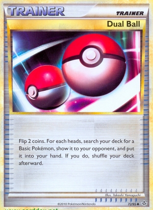 Wirf 2 Münzen. Durchsuche pro „Kopf“ dein Deck nach einer Basis-Pokémon-Karte, zeige sie deinem Gegner und nimm sie auf deine Hand. Mische anschließend dein Deck, falls du nach Karten gesucht hast.