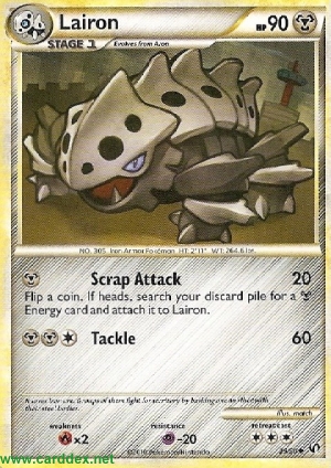 Kosten: Wirf eine Münze. Durchsuche bei „Kopf“ deinen Ablagestapel nach einer -Energiekarte und lege sie an Stollrak an.   Schaden: