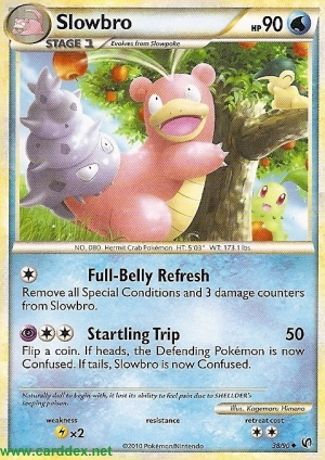 Kosten: Wirf eine Münze. Bei „Kopf“ ist das Verteidigende Pokémon jetzt verwirrt. Bei „Zahl“ ist Lahmus jetzt verwirrt.   Schaden: