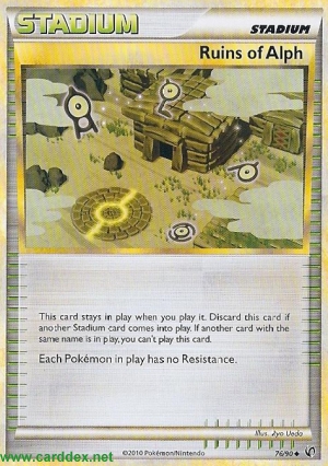 Diese Karte bleibt im Spiel, wenn du sie spielst. Lege diese Karte ab, sobald eine weitere Stadion-Karte ins Spiel kommt. Wenn sich bereits eine Karte mit diesem Namen im Spiel befindet, kannst du diese Karte nicht spielen.