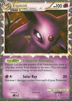 Psiana kann die Angriffe aller Pokémon, die du im Spiel hast und die sich aus Evoli entwickeln, wie eigene Angriffe verwenden. (Du benötigst dazu die für jeden der Angriffe erforderlichen Energien.)