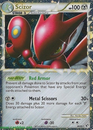 Verhindere allen Schaden, der Scherox durch Angriffe von Pokémon deines Gegners, an denen Spezialenergiekarten angelegt sind, zugefügt würde.