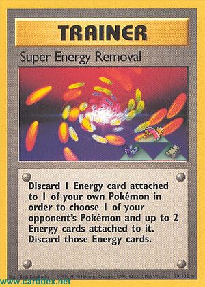 Beschreibung: Entferne eine auf einem Deiner eigenen Pokemon abgelegte Energiekarte, um ein Pokemon Deines Gegners und bis zu 2 darauf abgelegte Energiekarten zu wählen. Entferne diese Energiekarten.