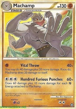 Du kannst mit diesem Angriff 40 Schadenspunkte plus 20 weitere Schadenspunkte zufügen. Wenn du das machst, fügt Machomei sich selbst 20 Schadenspunkte zu.