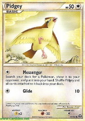 Kosten: Durchsuche dein Deck nach 1 Pokémon-Karte, zeige sie deinem Gegner und nimm sie auf die Hand. Mische Taubsi und alle daran angelegten Karten zurück in dein Deck.   Schaden: