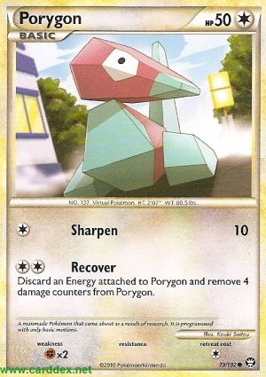 Kosten: Lege 1 an Porygon angelegten Energie auf deinen Ablagestapel und entferne 4 Schadensmarken von Porygon.   Schaden: