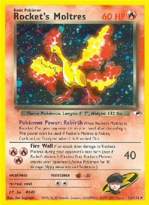 If an attack does damage to Rocket´s Moltres during your opponent´s next turn (even if Rocket´s Moltres is Knocked Out), Rocket´s Moltres attacks your opponent´s Active Pokemon for 10 damage. (Apply Weakness and Resistance)