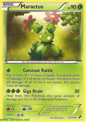 Wirf 3 Münzen. Zeigt 1 davon „Kopf“, fügt dieser Angriff 10 Schadenspunkte zu. Zeigen 2 davon „Kopf“, fügt dieser Angriff 30 Schadenspunkte zu. Zeigen alle Münzen „Kopf“, fügt dieser Angriff 60 Schadenspunkte zu.