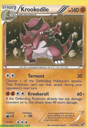 Kosten: Wenn auf dem Verteidigenden Pokémon bereits mindestens 1 Schadensmarke liegt, fügt dieser Angriff 40 weitere Schadenspunkte zu.   Schaden: