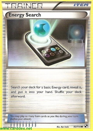 Durchsuche dein Deck nach 1 Basis-Energiekarte, zeige sie deinem Gegner und nimm sie auf deine Hand. Mische anschließend dein Deck.