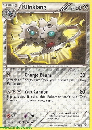 Kosten: Wirf 1 Münze. Bei „Zahl“ kann dieses Pokémon Blitzkanone während deines nächsten Zuges nicht einsetzen.   Schaden: