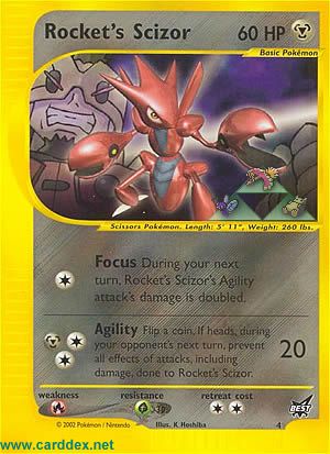 Kosten: During your next turn, Rocket´s Scizor´s Agility attack´s damage is doubled.  Schaden: