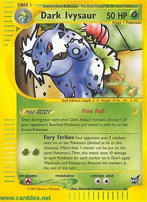 Once during your turn when Dark Ivysaur retreats, choose 1 of your opponent´s Benched Pokemon and switch it with his or her Active Pokemon.