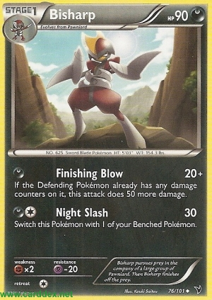 Kosten: Wenn auf dem Verteidigenden Pokémon bereits mindestens 1 Schadensmarke liegt, fügt dieser Angriff 50 weitere Schadenspunkte zu.   Schaden: