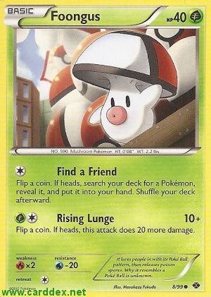 Kosten: Wirf 1 Münze. Durchsuche bei „Kopf“ dein Deck nach 1 Pokémon, zeige es deinem Gegner und nimm es auf deine Hand. Mische anschließend dein Deck.   Schaden: