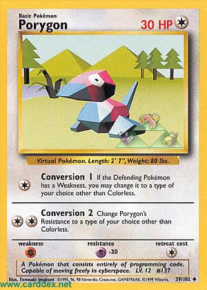 Kosten: Ändere Porygons Resistenz auf einen Typ Deiner Wahl (außer Farblos).  Schaden: