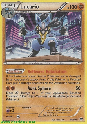 Wenn dieses Pokémon dein Aktives Pokémon ist und durch einen gegnerischen Angriff Schaden erhält (auch wenn dieses Pokémon dadurch kampfunfähig wird), lege 2 Schadensmarken auf das Angreifende Pokémon.