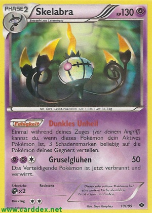 Einmal während deines Zuges (vor deinem Angriff) kannst du, wenn dieses Pokémon dein Aktives Pokémon ist, 3 Schadensmarken beliebig auf die Pokémon deines Gegners verteilen.