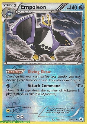 Kosten: Dieser Angriff fügt 10 Schadenspunkte mal der Anzahl der Pokémon im Spiel (deiner und der deines Gegners) zu.   Schaden: