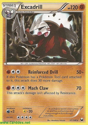 Kosten: Wenn an dieses Pokémon eine Pokémon-Ausrüstung angelegt ist, fügt dieser Angriff 30 weitere Schadenspunkte zu.   Schaden:
