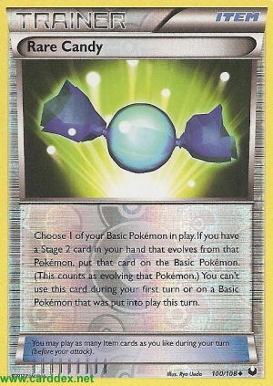 Beschreibung: Wähle 1 deiner Basis-Pokémon im Spiel. Wenn du eine Phase-2-Karte auf der Hand hast, die sich aus diesem Pokémon entwickelt, lege sie auf das Basis-Pokémon. (Das zählt als Entwickeln des gewählten Pokémon.) Du kannst diese Karte nicht während deines ersten Zuges oder für ein Basis-Pokémon, das in diesem Zug ins Spiel gebracht wurde, verwenden.
