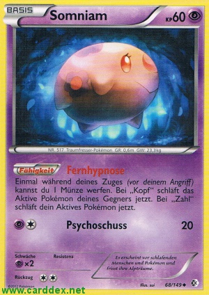 Einmal während deines Zuges (vor deinem Angriff) kannst du 1 Münze werfen. Bei „Kopf“ schläft das Aktive Pokémon deines Gegners jetzt. Bei „Zahl“ schläft dein Aktives Pokémon jetzt.