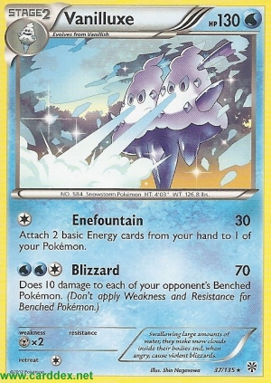 Kosten: Dieser Angriff fügt jedem Pokémon auf der Bank deines Gegners 10 Schadenspunkte zu. (Wende Schwäche und Resistenz bei Pokémon auf der Bank nicht an.)  Schaden: