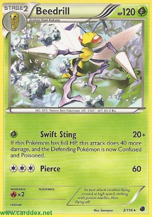 Kosten: Wenn dieses Pokémon volle KP hat, fügt dieser Angriff 40 weitere Schadenspunkte zu und das Verteidigende Pokémon ist jetzt verwirrt und vergiftet.  Schaden:
