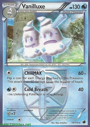 Kosten: Wirf für jede an dieses Pokémon angelegte Energie 1 Münze. Dieser Angriff fügt 60 Schadenspunkte mal der Anzahl „Kopf“ zu.  Schaden: