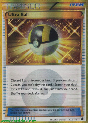 Lege 2 Karten von deiner Hand auf deinen Ablagestapel. (Wenn du keine 2 Karten auf deinen Ablagestapel legen kannst, kannst du diese Karte nicht spielen.) Durchsuche dein Deck nach 1 Pokémon, zeige es deinem Gegner und nimm es auf deine Hand. Mische anschließend dein Deck.