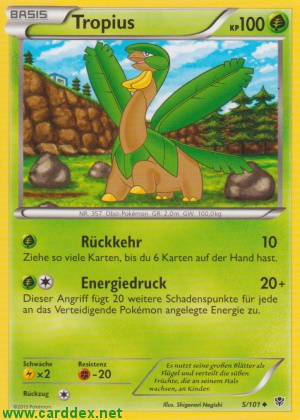 Kosten: Dieser Angriff fügt 20 weitere Schadenspunkte für jede an das Verteidigende Pokémon angelegte Energie zu.  Schaden: