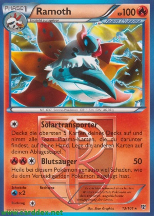Decke die obersten 5 Karten deines Decks auf und nimm alle Team Plasma-Karten, die du darunter findest, auf deine Hand. Lege die anderen Karten auf deinen Ablagestapel.