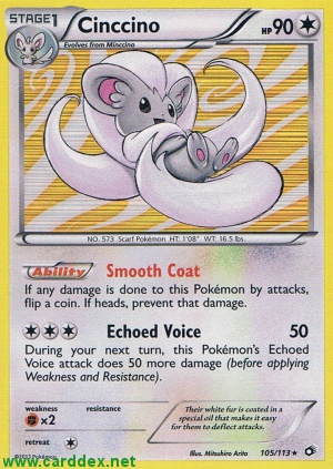 Kosten: During your next turn, this Pokémon's Echoed Voice attack does 50 more damage (before applying Weakness and Resistance) Schaden: