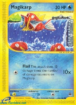 Kosten: This attack does 10 damage times the number of damage counters on Magikarp.  Schaden: